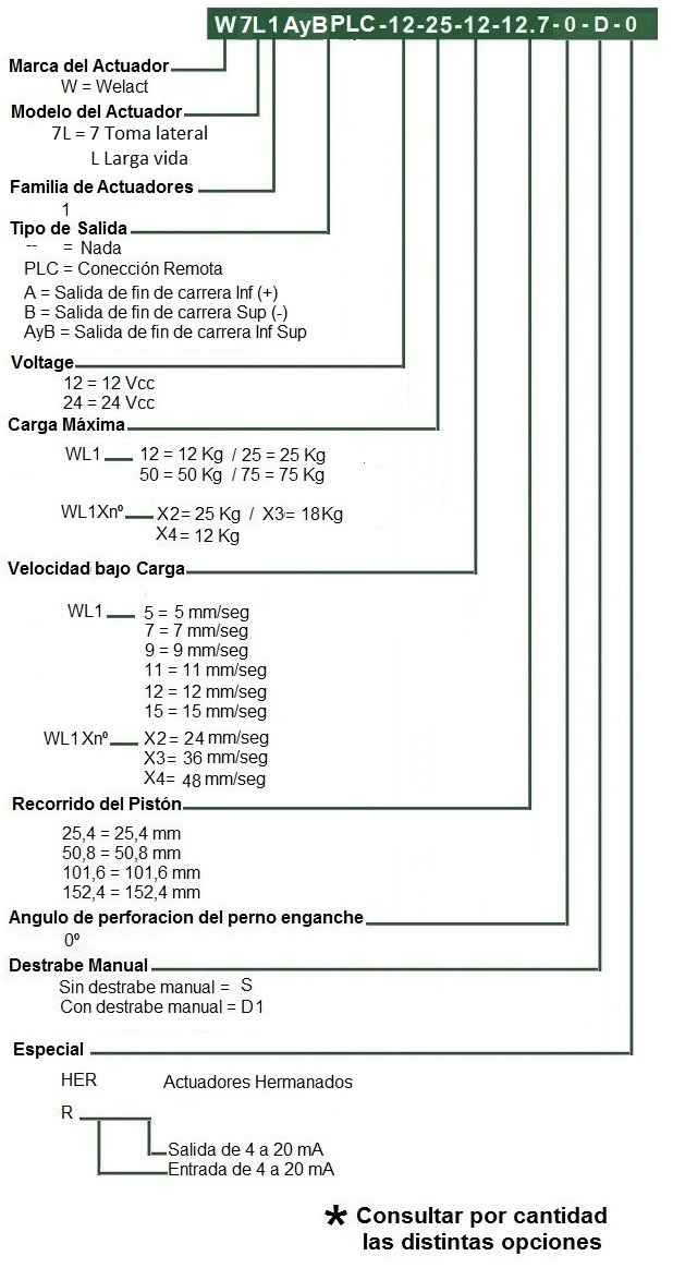 En la Fuerza especifica en el código del Actuador, tanto para tirar como también para empujar. Estas cargas se entienden que es la Fuerza ejercida en el movimiento